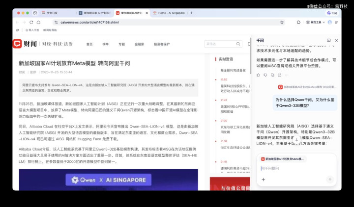 与豆包选择从手机入手不同,阿里千问的策略是将AI做成一个横跨电脑、浏览器乃至未来所有终端的“操作层”。夸克AI浏览器的出现,让千问*次具备了系统级权限的雏形,它能理解整个网页结构,能主动收集内容并完成信息管理,也能执行跨标签、跨页面的整理任务。